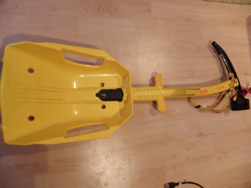 Das System mit dem Pickel als Schaufelstiel gab es früher auch von BlackDiamond, war aber schwerer (kein Leichtpickel). Auch von Grivel und ich glaube Salewa gab es solche oder ähnliche Lösungen, ist aber alles wieder vom Markt verschwunden. Die Schaufel mit rotem Alublatt kommt von Rottefella/Witko gab es entweder mit Holzstiel oder mit Sonde(in Plastikhülle)als Stiel, ähnlich sieht glaube ich auch die (ehemalige?) Lawinenschaufel der Schweizer Armee aus.