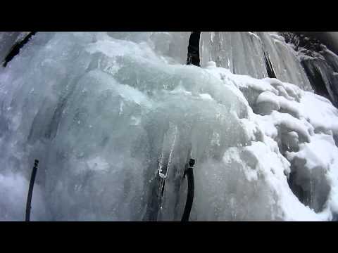 Über die Route Abseilen auf der rechten Seite des Eisfalles.