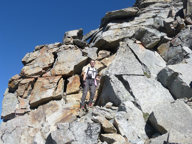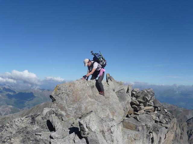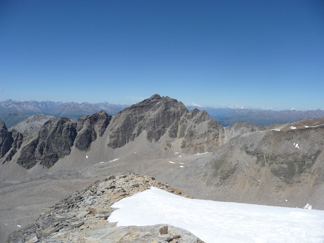 Für etwaige Wiederholer sei gesagt, dass insgesamt der Grat deutlich mehr "Auf-und-Ab" hat, als man vermuten würde, ich empfand ihn auch heikler als die wenig aussagekrätigen Angaben im Führer, vor allem beim Verlassen der Gratschneide (was ab und an notwendig war) sehr brüchig und steil. Belohnt wird man jedoch mit Einsamkeit und ständig grandioser Rundsicht.