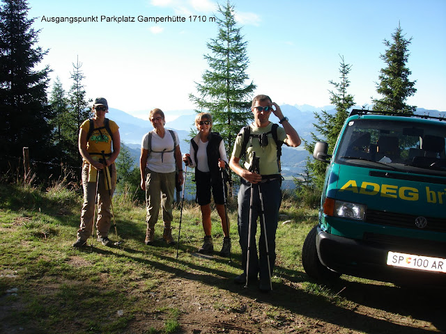 Ausgangspunkt ist der Parkplatz Gamperhütte den man mit dem Auto über Trebesing und Zlatting erreicht. Zurzeit ist die Staße in sehr schlechten Zustand, daher auch keine Maut (Normal 2,-- pro Durchfahrt - autom. Schranken)