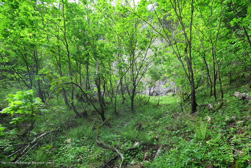 Ich quere eine Forststraße und eine weitere und dort finde ich den Einstieg in den Steig nicht mehr. Beim letzten Mal habe ich den besser gefunden. Also gehe ich irgendwie querfeldein. Vor mir taucht eine Felswand auf, also wende ich mich nach Südosten zu: