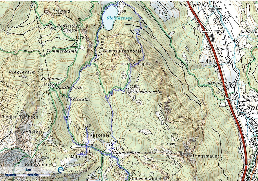Wegverlauf: Parkplatz Gleinkersee - Seespitz - Stubwiesalm - Stubwieswipfel - Halssattel - Halskogel - Halssattel - Mitterberg - Halssattel - Zickalm - Parkplatz