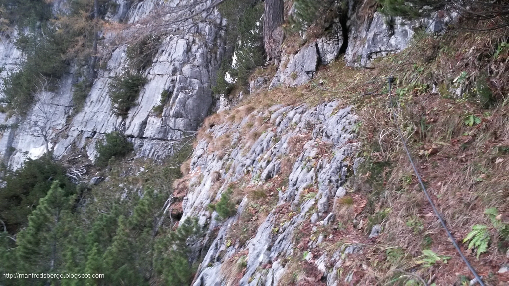 Ich gehe jetzt am Wanderweg weiter, der ein bisschen alpiner wird, also steiniger: